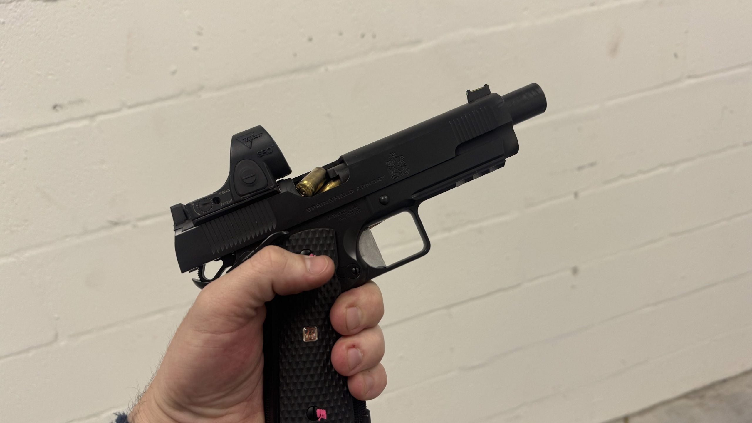 - Note: Some 1911/2011s do not play nice with the SRO, as the objective lens can overhang the ejection port. This overhang may very well have been the culprit for the failure to extract mentioned earlier.