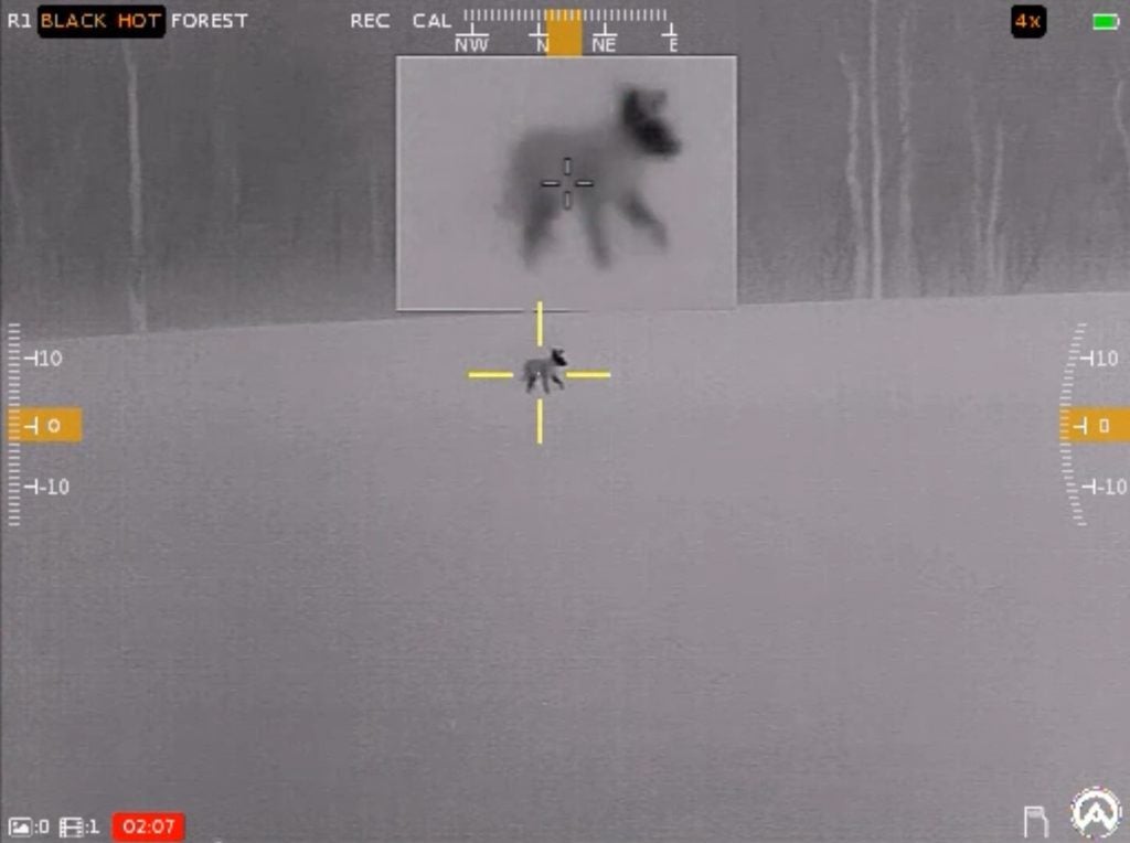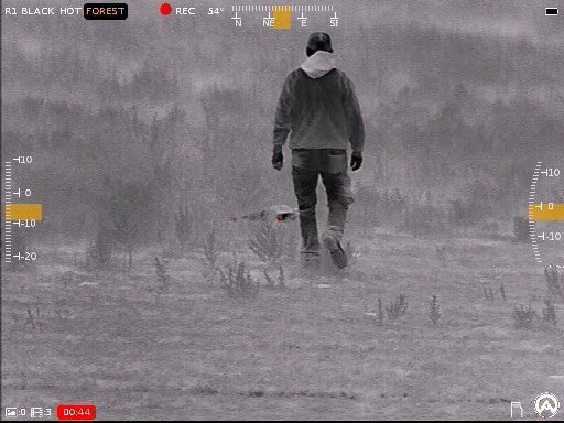 Moving back to the main display, rotating the right side turret controls magnification. Pressing it in once triggers a manual NUC/FFC event, or delays one if an automatic countdown is in progress. Sounds scary, right? Nothing to fear. I’ll confess that this tech goes a bit over my head, but the function is related to preserving image quality by calibrating the sensor. In my experience, this does not disrupt function at all, but I did not delve too deeply into the subject or notice the overall effect when I used it.