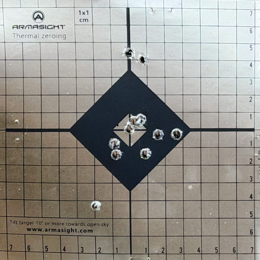This is a great time to briefly discuss the thermal zeroing target that comes with the Contractor 640. Zeroing a thermal optic requires a heat signature small enough to be precise, yet with enough temperature contrast to acquire a positive point of aim. There are plenty of ways to do this using black electrical tape and so on, but hats off to Armasight for including a great, out-of-the-box solution.