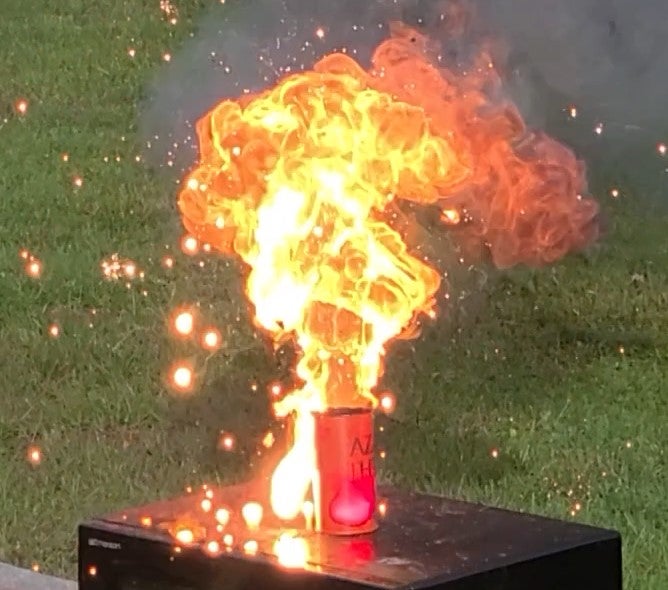 Remember when I mentioned how important sealing the threads of the fuse body is? Well, my first attempt at setting off an AZAO Thermite Grenade started with me skipping that clearly stated part of the instructions. So, a thermite rocket ensued.