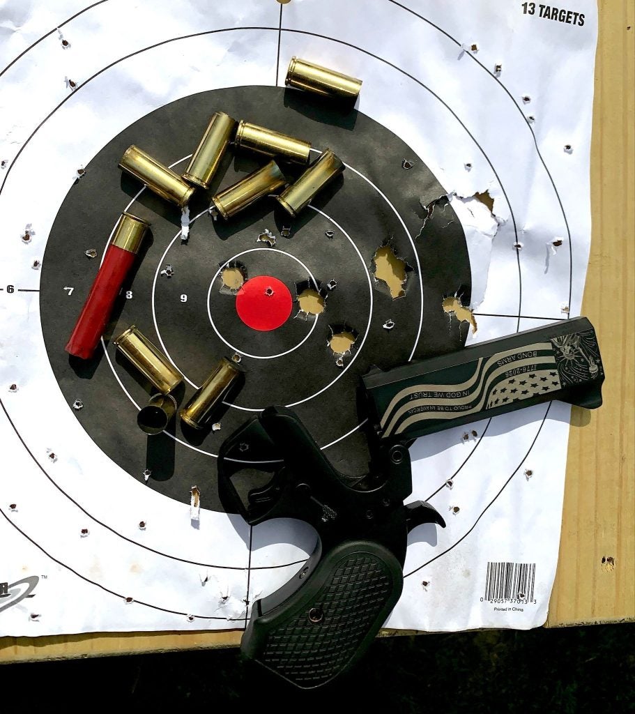 I admit, I did not attempt to track the .45/.410’s group size as I would with a “normal” pistol or revolver. These guns are not made for that purpose… as the manual states, they are supposed to be fired from one to about 21 feet. Whether you are defending a life or ventilating tin cans, you can’t hit much past seven yards.