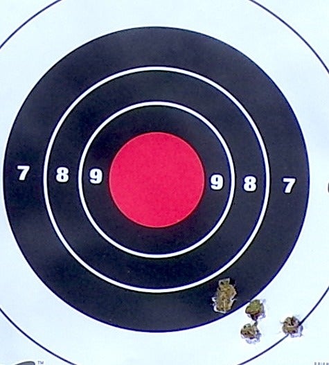 Here is a representative target, from the 20-yard bench, just to get an accuracy baseline.