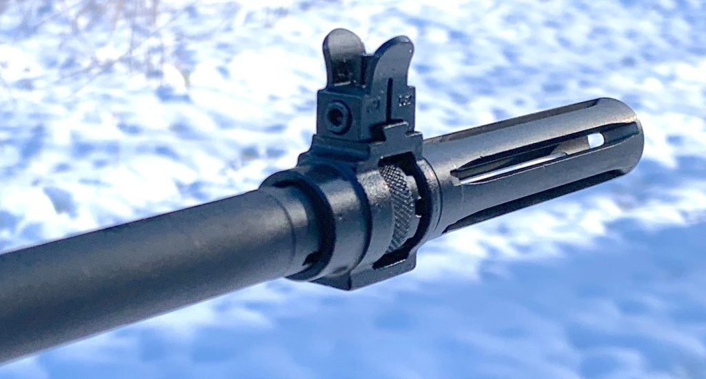 The “interesting” part comes in now… I’m done with my past history. The rifle I got does not have a bayonet lug or a 20-round magazine like the M14 had. He ordered both items from SA to make his as M14-like as possible (minus the giggle switch, of course). I think it’s good that you can order those things. The bayonet lug was discontinued after the 1994 gun control legislation hit, but you can get a pre-ban flash hider with a lug, as he found out.