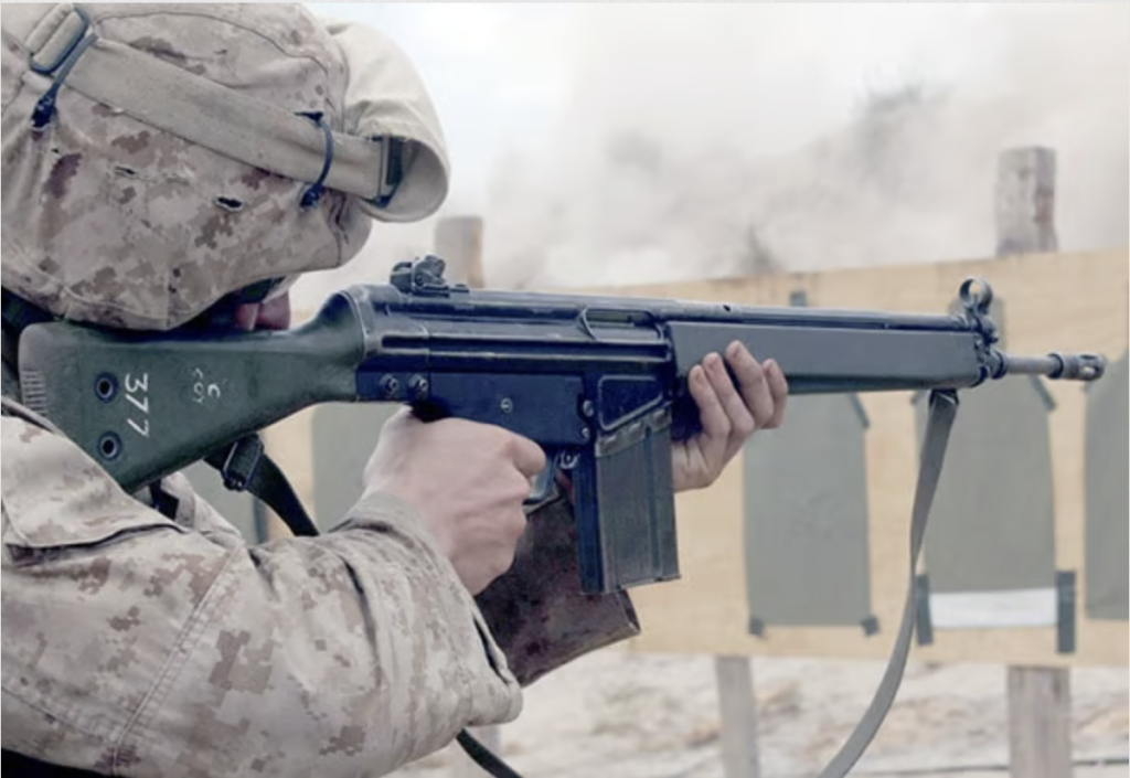 For much of NATO, it was the FN FAL and the HK G3; both chambered in 7.62×51mm NATO, widely issued, and proven in harsh environments.