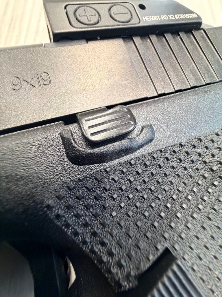 The frame also now includes a trigger guard undercut, aimed at reducing the common “Glock knuckle” irritation that many shooters experience. Along with a slightly shorter trigger reach and a flared magwell, the ergonomic changes show Glock’s effort to improve shooter comfort and control without compromising reliability.
