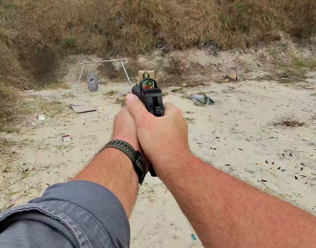 The WOLF0 claims it’s IPX7 rated, so I submerged it in water and let it sit for half an hour. I pulled it out, dried the emitter, and sure enough, it still worked. I dropped the gun and optic from chest height at three angles, both sides and the top.