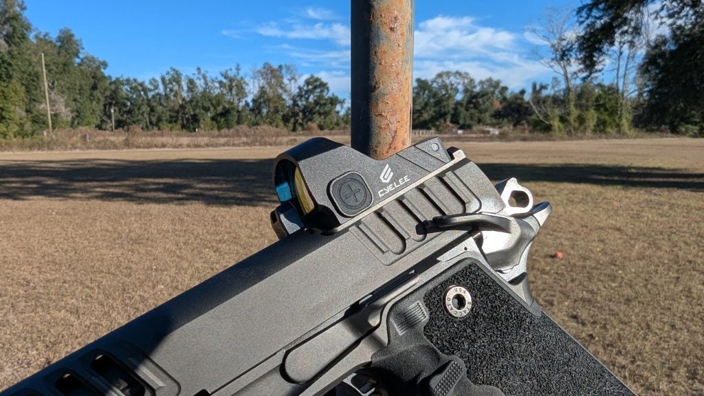 Zeroing was easy. I first slaved the dot to the Staccato’s iron sights, then adjusted from there. The Staccato is an absurdly accurate gun, so it was easy to get the dot zeroed at 15 yards. The reticle is a 3 MOA red dot, which is mostly fine. It’s not Aimpoint perfect, and it starbursts a little at the bottom of the dot.