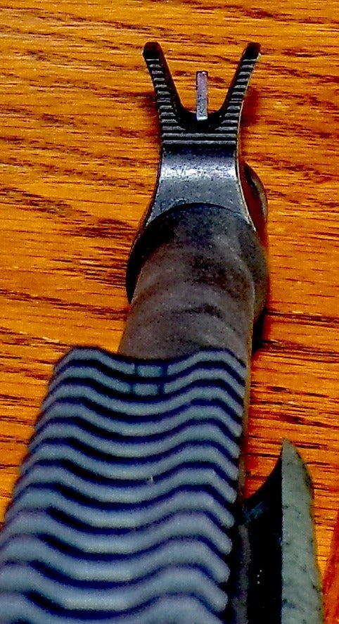 Logo, sight, and bolt release. The bolt comes out easily enough for cleaning.