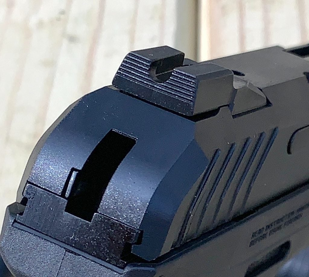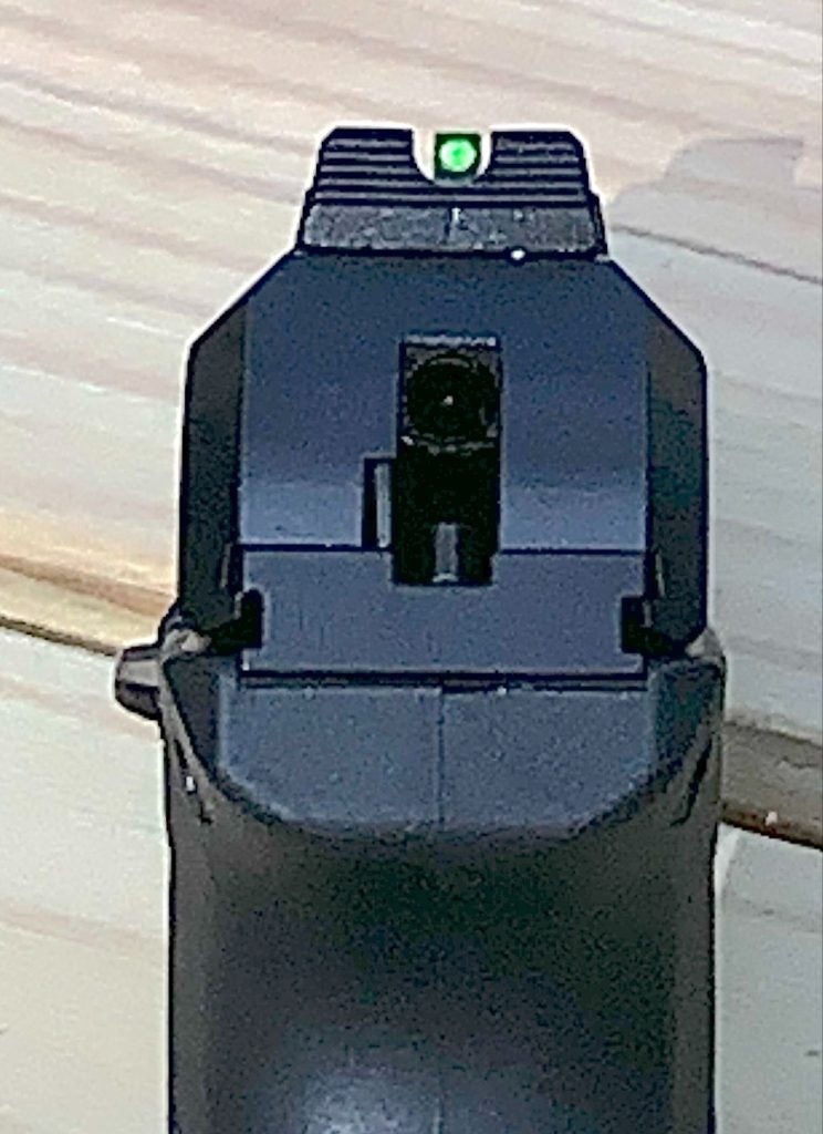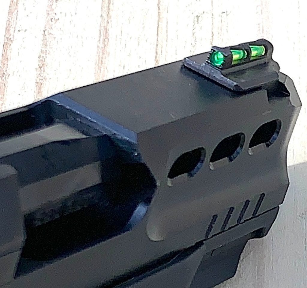 The sights need a shout-out here, too. That fiber-optic front just nestles into the U-notch rear without effort. These are very visible and usable sights.