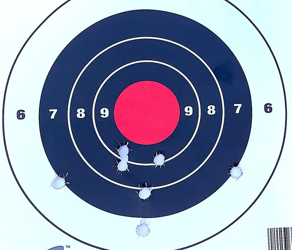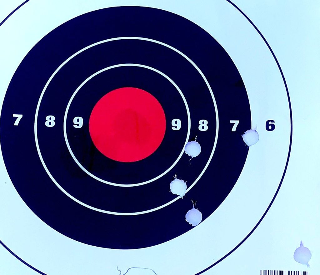 Here are three representative 25-yard targets, from the loads in the order listed above…