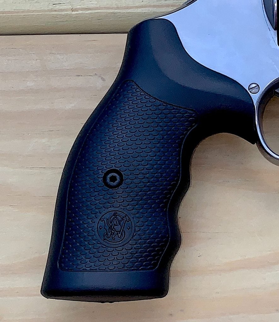 The Hogue grip replaced the Goncalo Alves wooden panels in the 1990s.