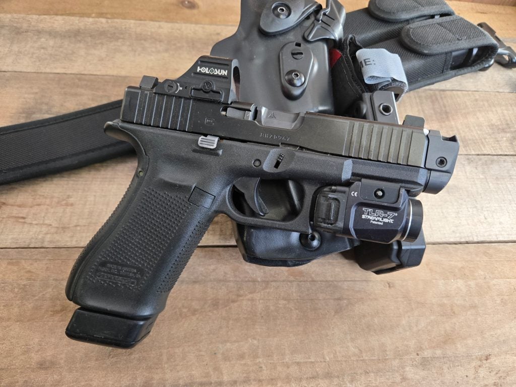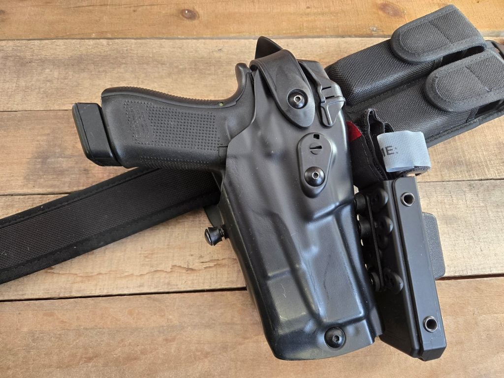 I use a Safariland 6360RDS ALS/SLS Level III duty holster for work and I needed any system I used be able to work with it. With the Radian set up all I had to do was move from the Glock 19/45 model that I was using and move up to a Glock 17 model. My Glock 45 with Afterburner and RAMJET installed fit perfectly in the 17 holster.