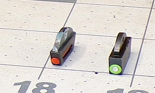 Here’s the “before” … the OEM sights. They’re not bad at all, but the XS front dot has a tritium insert and will be more visible in low light.